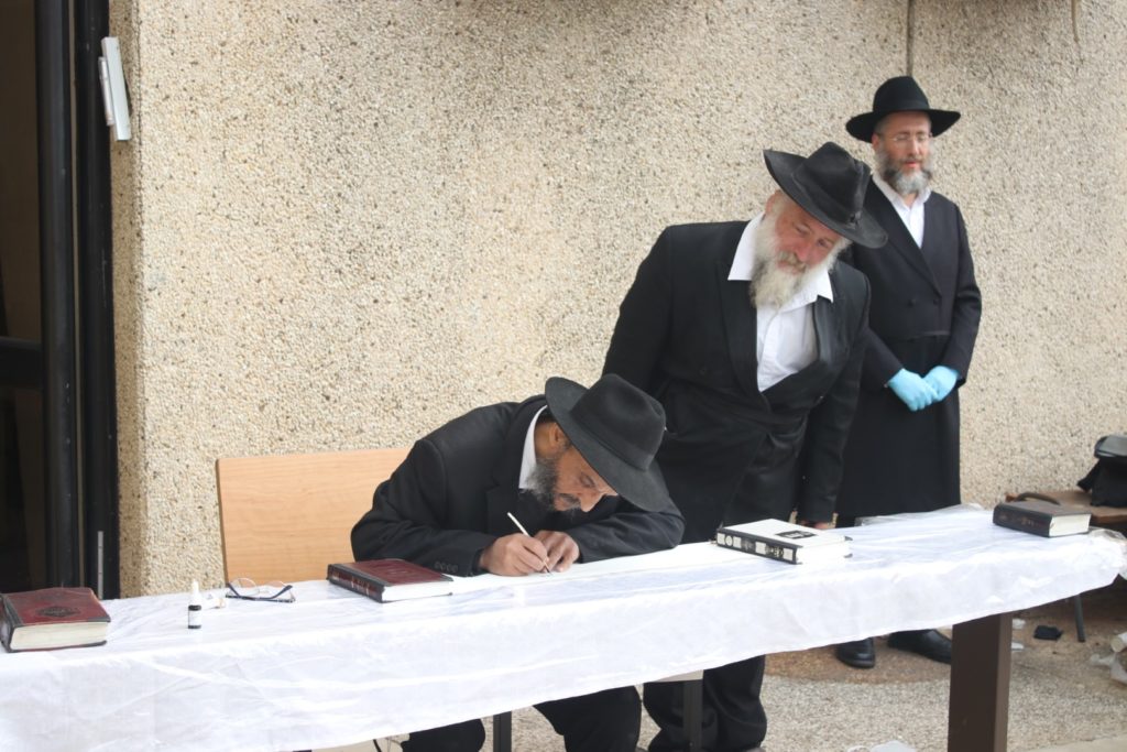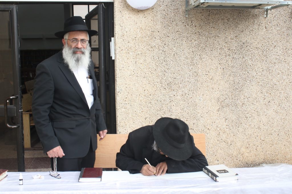 בהמשך בירך הר' יוסף שי' הכהן ערנטרויי גבאי ביהכנ"ס רמת רזים ברכת כהנים ולאחר מכן התחיל הסופר הר' יעקב חיים שי' אביטבול לכתוב את ספר התורה בשליחות הרב וגבאי בתי הכנסת שנכחו בארוע.