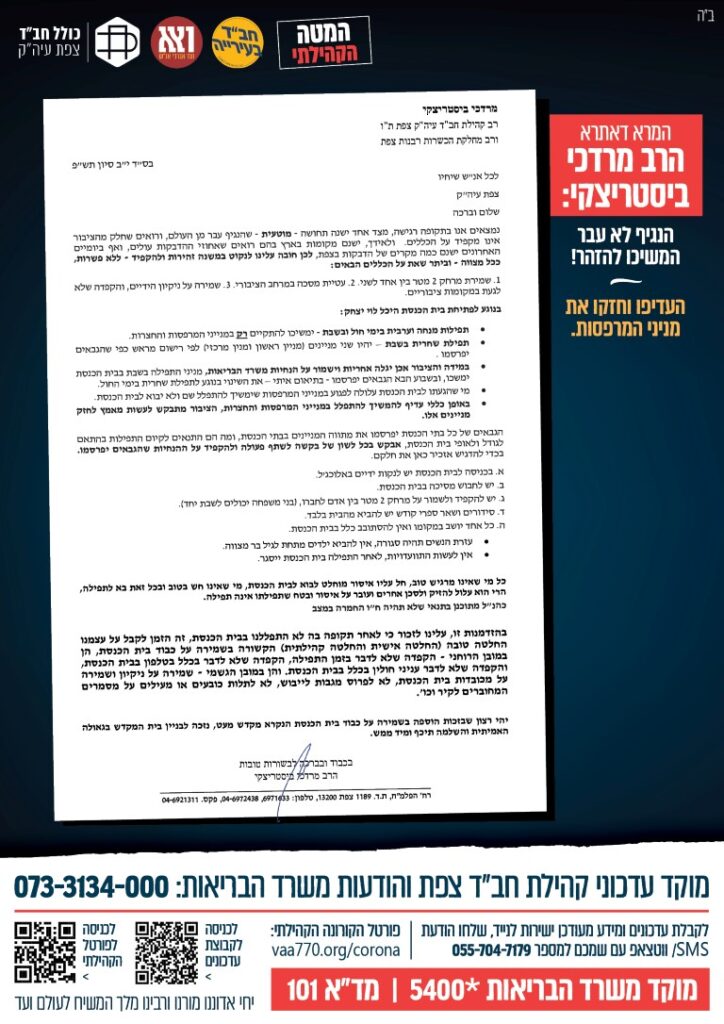 מטה הקורונה הקהילתי - קהילת חב"ד צפת